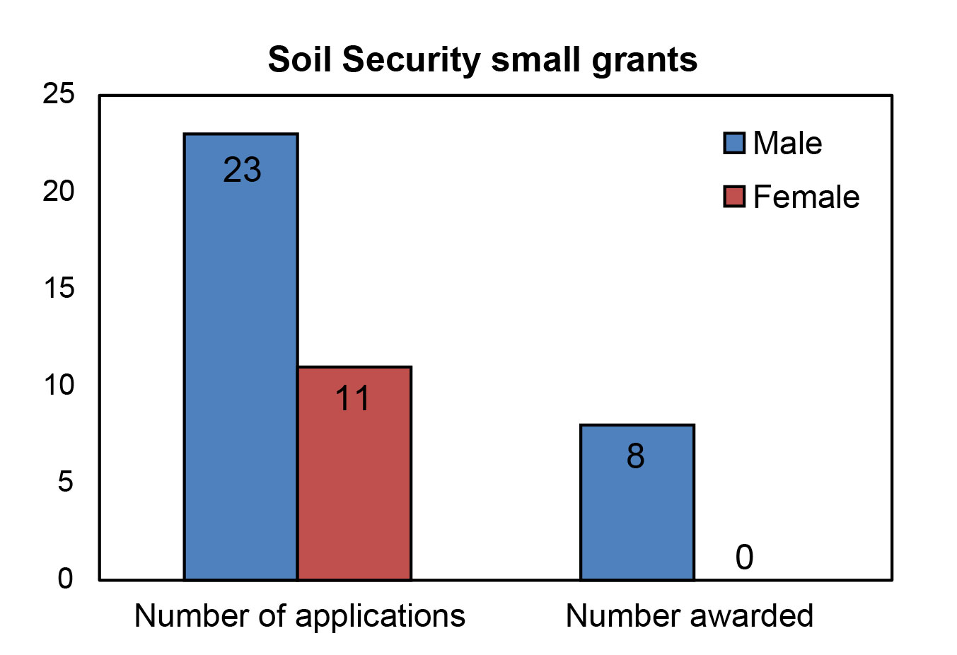 Out of 34 applications, 11 were led by female principal investigators โ which means that grants led by women made up a reasonably healthy 32% of all grants submitted. And this number is actually representative of the gender balance of the members of the British Society of Soil Science (which assume to be a representation of the UK soil science community as a whole): women make up 30% of its members.